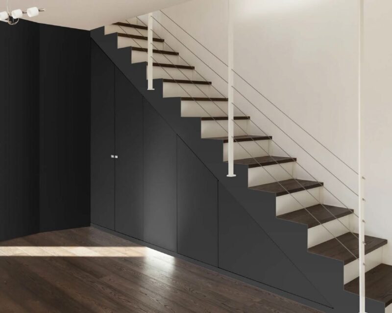 Dveře ve skryté zárubni jsou dnes jednou z nejpopulárnějších variant pro mansardu, protože jsou často instalovány pod schodiště a zakrývají průchod do místnosti, která není určena pro oči návštěvy: pomocné místnosti, šatny, žehlicí místnosti apod.